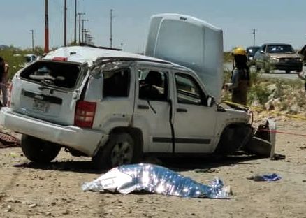 Juárez, Chihuahua – Un trágico accidente carretero en la carretera a Casas Grandes cobró la vida de tres personas esta tarde. Un tráiler de plataforma azul impactó por alcance a una camioneta Jeep Compass, provocando que ésta perdiera el control, se saliera de la carretera y volcara varias veces, quedando completamente destruida.