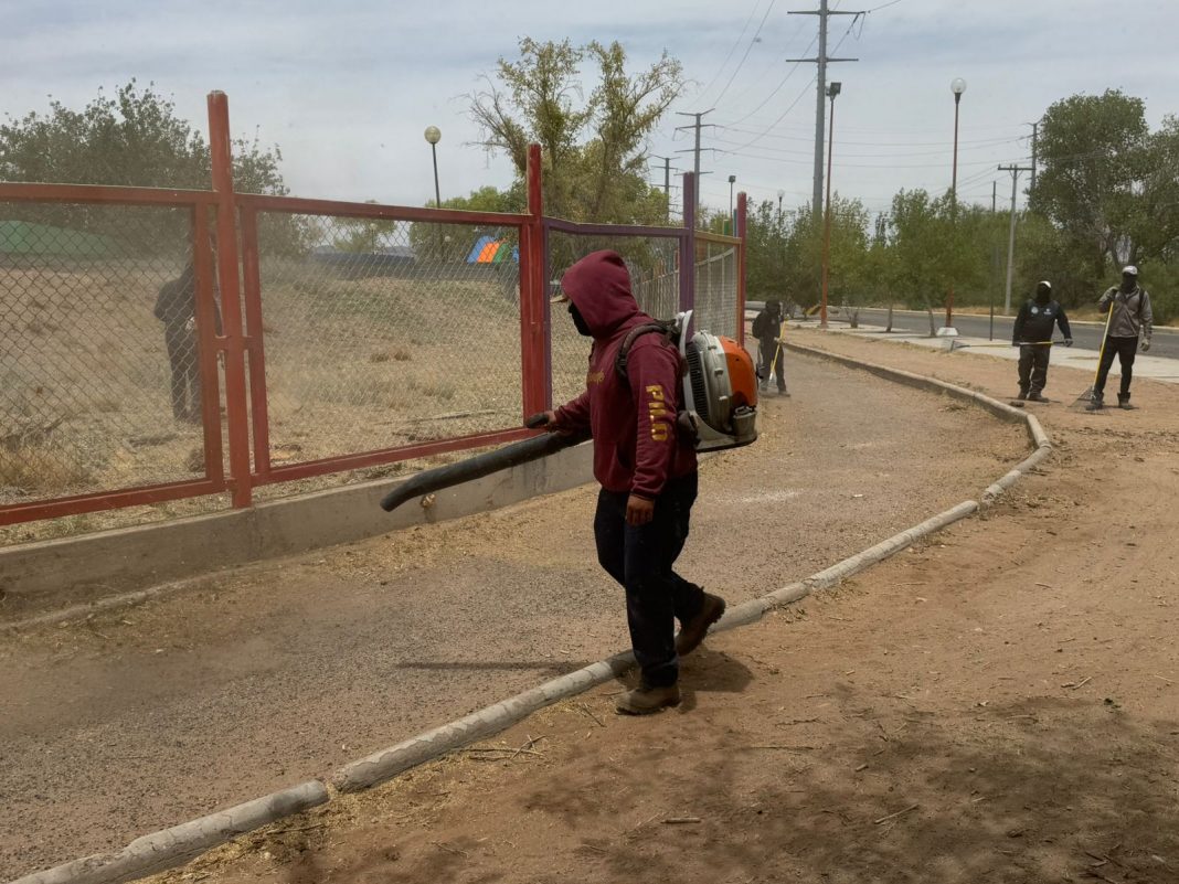 El personal de Servicios Públicos del Municipio de Delicias realizó trabajos de limpieza, deshierbe, poda y reparación de alumbrado público en el área aledaña al parque de la Ciudad Infantil.
