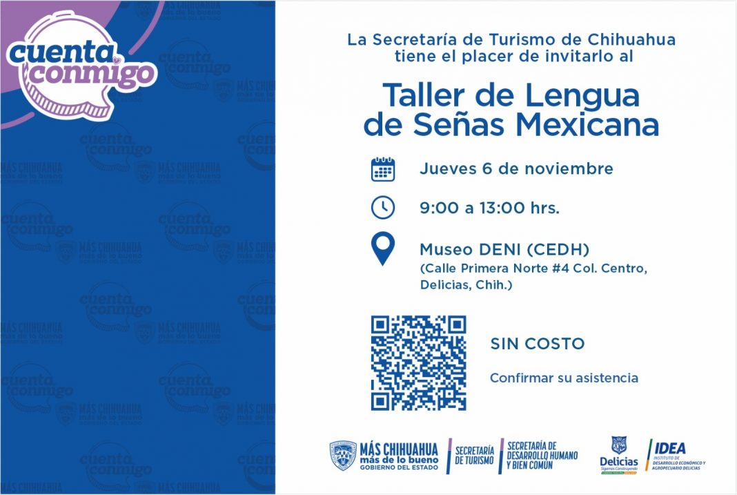 Con el objetivo de fomentar la inclusión y fortalecer las habilidades de comunicación entre los prestadores de servicios turísticos, el Instituto de Desarrollo Económico y Agropecuario de Delicias (IDEA), a través de su área de Turismo, invita a participar en el Taller de Lengua de Señas Mexicana, que se realizará este jueves 6 de noviembre en el Museo DENI (CEDH), en un horario de 9:00 de la mañana a 1 de la tarde.