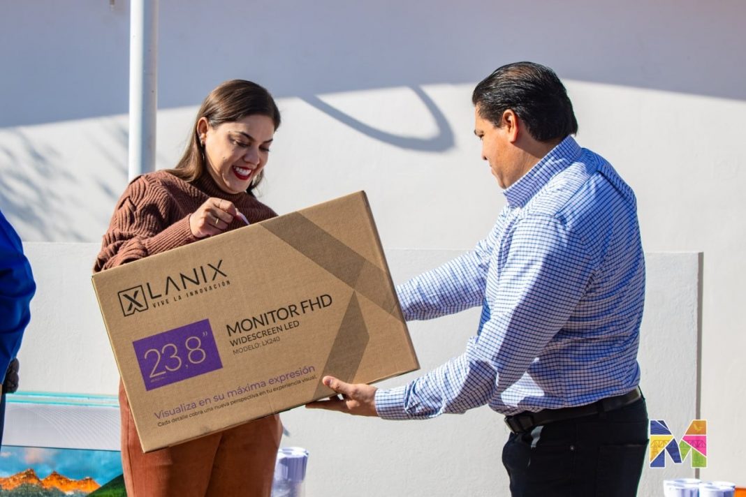 La alcaldesa Miriam Soto estuvo presente en la entrega oficial acompañando a los planteles de Guadalupe Victoria, Estación Consuelo y Felipe Ángeles