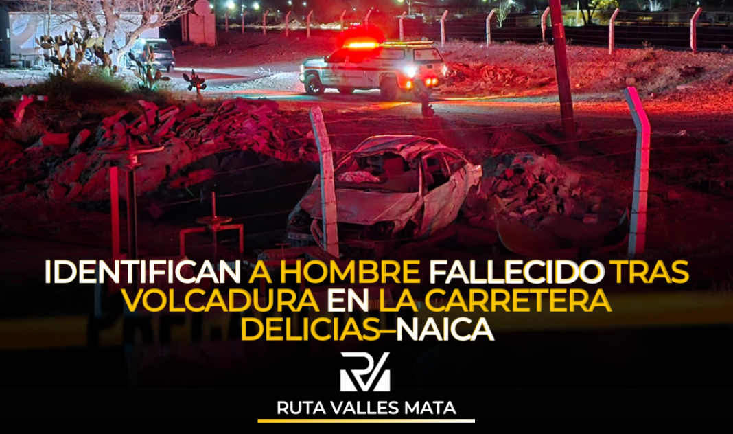 Delicias, Chih.– Fue identificado como Edgar Lorenzo M.R., de 44 años de edad, el hombre que perdió la vida tras la aparatosa volcadura registrada el pasado sábado 21 de febrero sobre la carretera Delicias–Naica, a la altura del kilómetro 6+200.