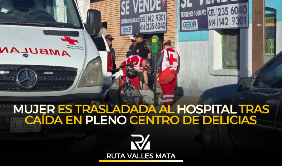 Delicias, Chih.– Una mujer resultó lesionada la tarde de este miércoles luego de sufrir una caída sobre la banqueta en la zona centro de la ciudad, lo que generó la movilización de corporaciones de emergencia.