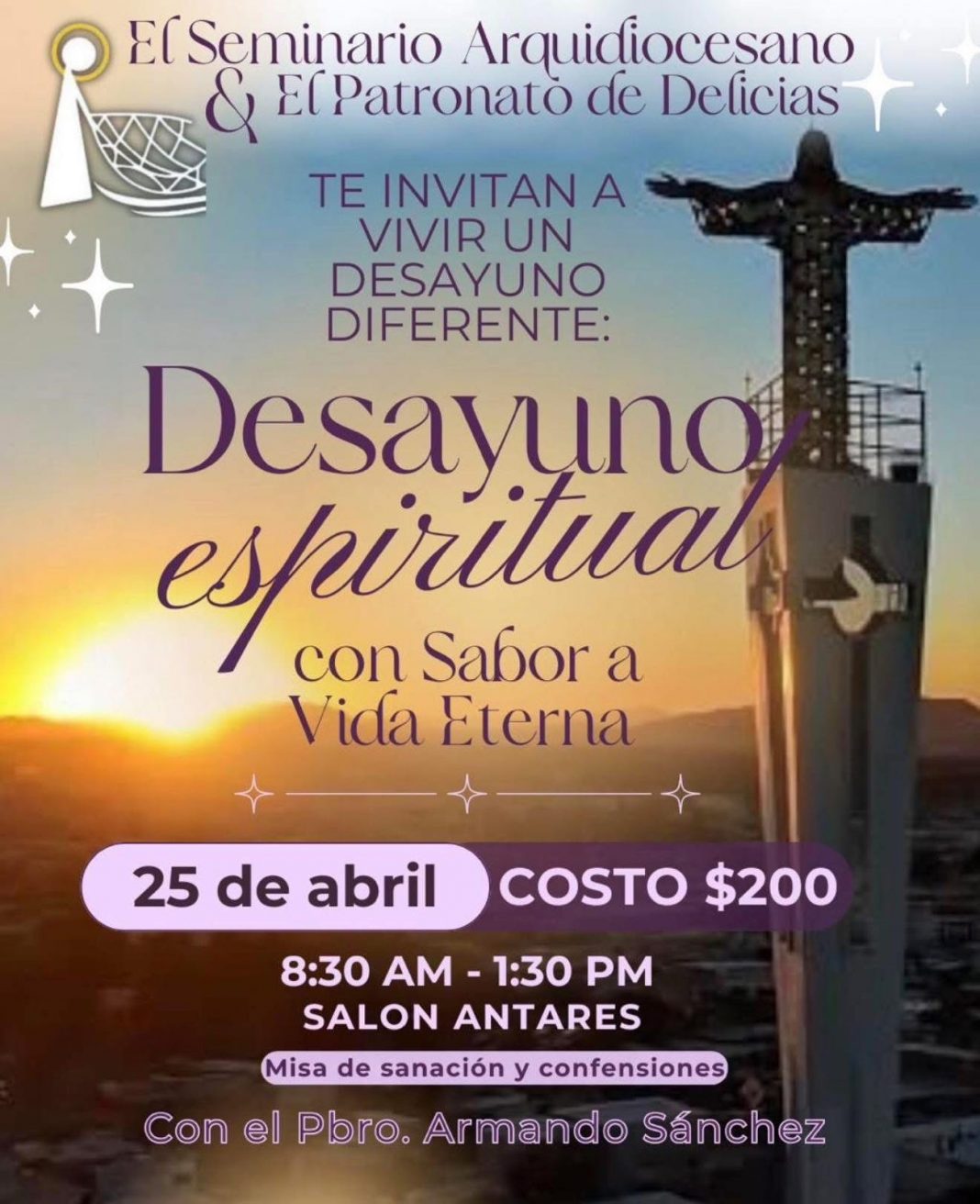 Además del desayuno, los asistentes podrán participar en actividades espirituales como misa de sanación y confesiones, acompañadas por el Pbro. Armando Sánchez.