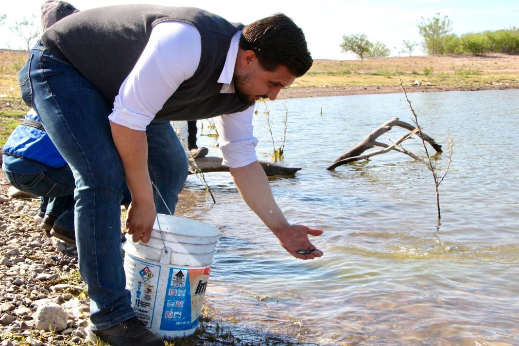 Fue la mañana de este miércoles en el punto conocido como El Rebalse que se reunieron integrantes y directivos de la Sociedad Cooperativa de Producción Pesquera Pescadores de la Presa Las Vírgenes, para junto con directivos y personal de Desarrollo Rural de Gobierno del Estado y la Dirección de Desarrollo Rural del municipio, realizar la siembra de ciento cincuenta mil alevines de tilapia en la presa Francisco I. Madero con el propósito de mantener el equilibrio en el embalse, tras la fuerte afectación causada por la prolongada sequía.