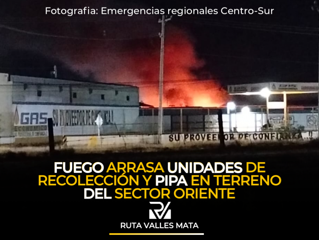 FUEGO ARRASA UNIDADES DE RECOLECCIÓN Y PIPA EN TERRENO DEL SECTOR ORIENTE