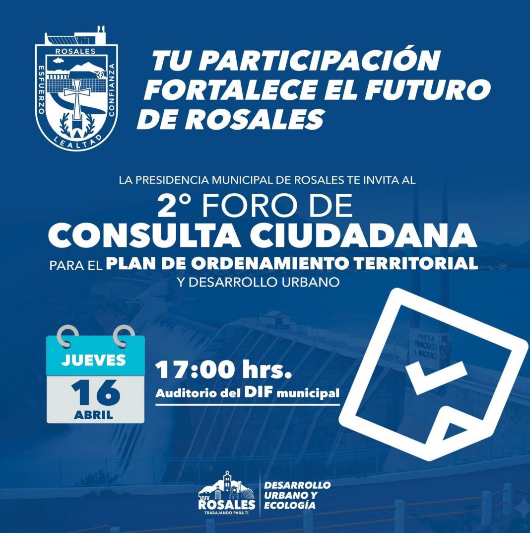Rosales, Chih..- El Gobierno Municipal de Rosales invita a la ciudadanía a