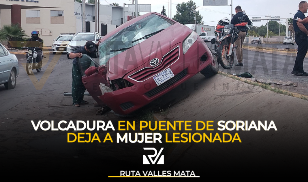 VOLCADURA EN PUENTE DE SORIANA DEJA A MUJER LESIONADA