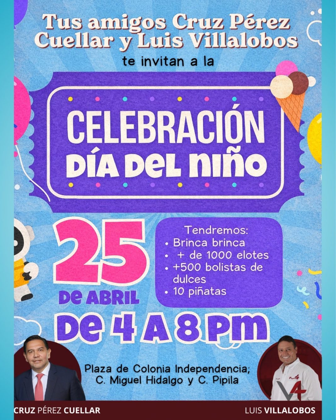 El evento es promovido por Cruz Pérez Cuéllar y Luis Villalobos, quienes extendieron la invitación a las familias para asistir este próximo 25 de abril a la Plaza de la Colonia Independencia.