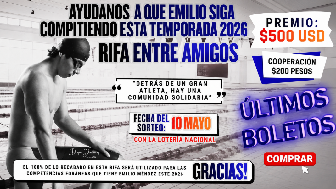 Delicias, Chih.– Con el objetivo de reunir recursos para sus próximas competencias foráneas, fue lanzada una rifa entre amigos en apoyo al nadador Emilio Méndez, quien busca mantenerse activo durante la temporada 2026.